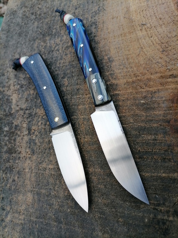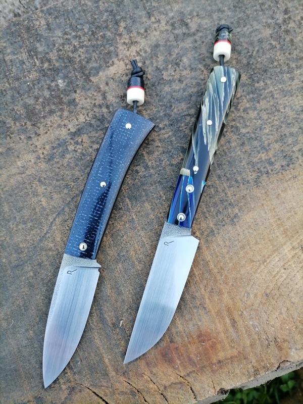 manche micarta jute pour le petit et Rejon (fibre végétales naturel et résine) pour l'autre.